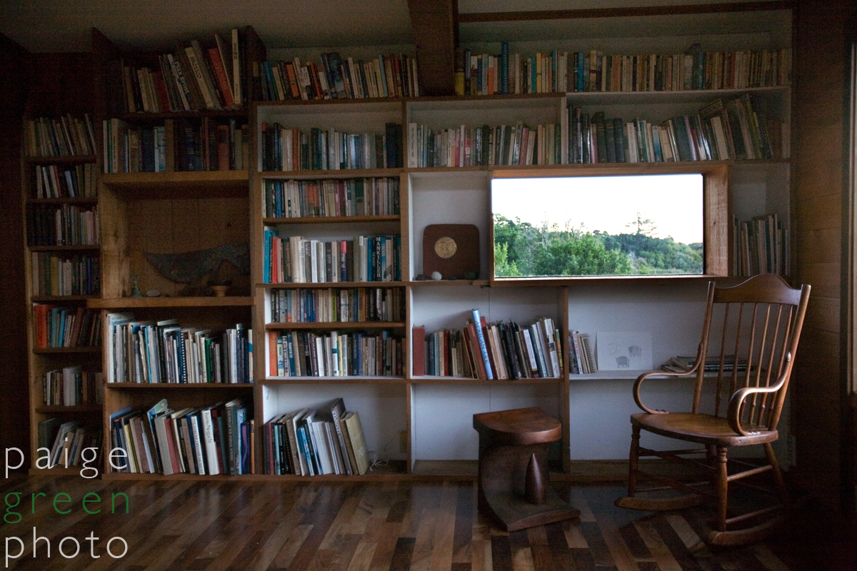 Everywhere you look you see something inspiring…. the view of Tomales Bay and Black Mountain that you can’t escape from if you try, the wall of handcarved wood, the sculptures in every corner, the huge workshop stocked with anything you need, the cozy wood-stove that warms your entire being…