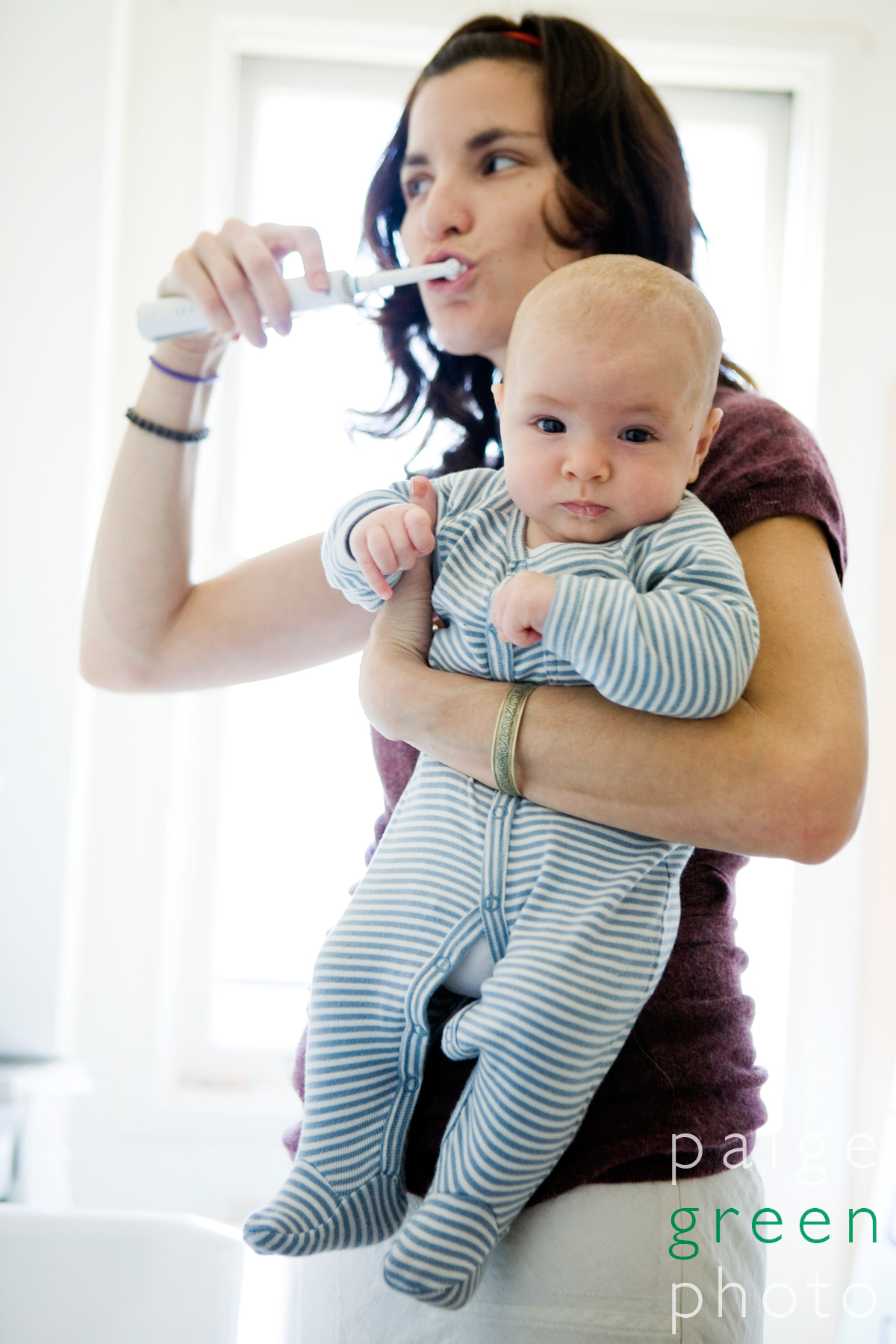 So I did the family photos that they wanted and then we tried to think of baby topics that magazines might want photos of. She told me babies like bouncing on yoga balls, they like the sound of electric toothbrushes and bath time.