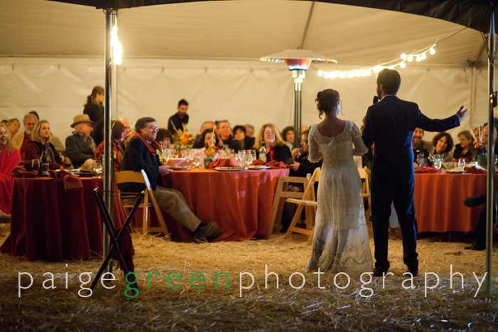 The wind was very, very cold. But everyone huddled together as best as they could, and afterward we all had a greater appreciation for the big ball of fire in the sky and for the tall silver poles of fire that were on the patio and in the tent during the reception.