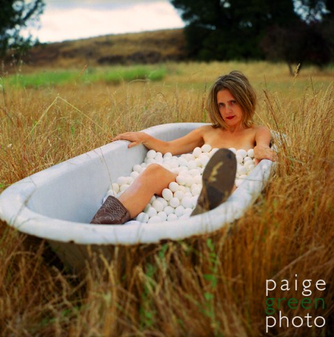 My friend Kelly saw that I needed an idea for Jude and Paige’s Adventures in Stock project, so she called me up with her vision: bathtub, full of eggs, with her, cowboy boots and a bird’s nest in her hair. I said, “Perfect! I’ll get the tub and eggs.”